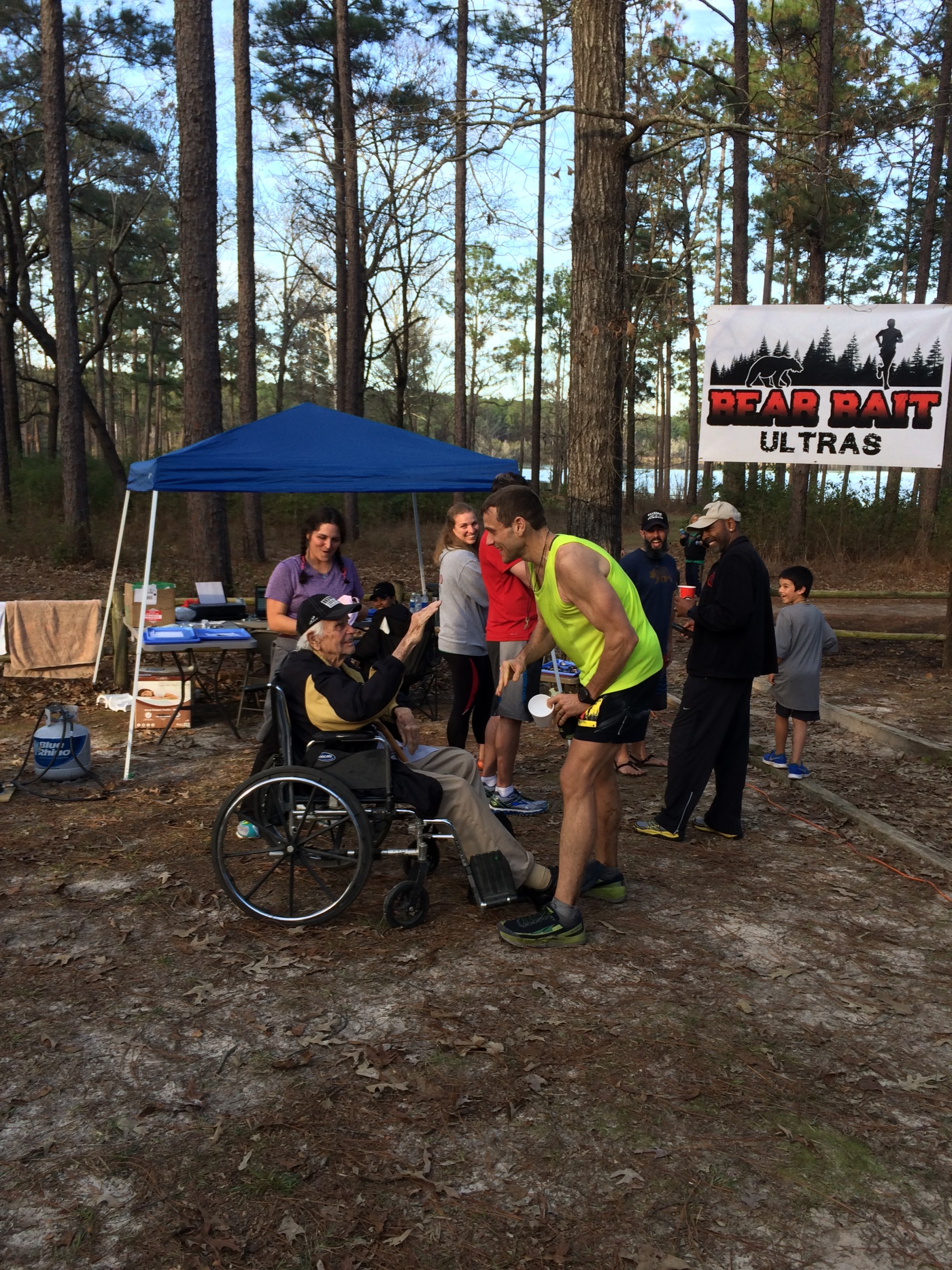 Fast forward a few years of living this way, my friend Jean, who is also pretty tight with Running and Plants and is the person who talked me into signing up for my first ultra in Destin this past February, twisted my arm ever so slightly to sign up for the Bear Bait 50 miler, yet another ultra-marathon (now my fourth). He had just inspired the living shit out of me in November with his performance at a 100 mile race in the mountains for which our buddy Wally (another person my homie Running has introduced me to) and I paced, and helped his wife and daughter crew for him. Not long after witnessing what I saw him do on the mountain that night, I decided that for the first time I wanted to really race, as opposed to just finishing an ultra. I wanted to pay Running with something besides nipple blood this time. My previous ultra events had been so mind-blowing, so overwhelming, that I was elated to just get to the finish line. My real race efforts were saved for the 26.2 mile distance I, while still a newbie, felt like I knew a little more about. But what if I trained for, and raced and raced an ultra like it was a marathon?