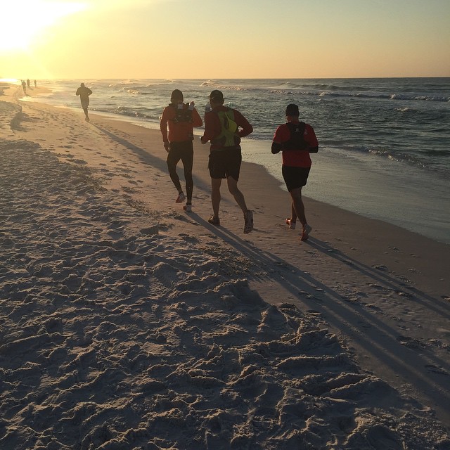 After hearing the aforementioned podcast, my buddy Jonanthon (JT) texted to me a message… You see, we had both heard James’ story on the same day via #RRP 149, and Jonathon had a “crazy idea” per this text message. The minute I read the text I knew what the crazy idea was, and if I was right about it, I was IN. Sure enough, just as I suspected, JT was proposing we tri (see what I did) to catch up with the Iron Cowboy as he made his way along the gulf coast. We have a buddy in Mobile, and we noticed that Iron Cowboy James would be completing his 20th (!) Ironman-distance there. So, we decided to, pending tropical weather, go run the 26.2 miles with him that day. Lucky, the weather cooperated, James was still going strong, and the run was on…